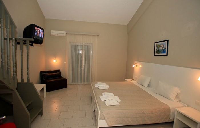Hotelul dispune de 155 de unitati de cazare, de tip doubles rooms si family rooms, cu urmatoarele facilitati standard: aer conditionat, TV, frigider, telefon, seif (contra cost), baie / dus, uscator de par, articole de toaleta gratuite, balcon/terasa. Internet corner – contra cost. Animalele de companie nu sunt permise.