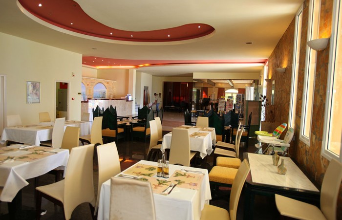 Hotelul dispune de doua restaurante si de 3 baruri: principal, la piscina si pe terasa. Copiii au la dispozitie un club pentru copii (varsta 3-12 ani), un loc de joaca, jocuri, concursuri, activitati creative si o piscina. Iubitorii de sport au la dispozitie sala de fitness, terenul de tenis, sau pot practica sporturi nautice, mini fotbal, beach volley, baschet, tenis de masa.  Personalul de divertisment al complexului organizeaza jocuri si spectacole live pe tot parcursul zilei. La piscina exterioara si pe plaja cu nisip exista sezlonguri si umbrele de plaja.  Animalele de companie nu sunt permise.