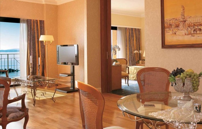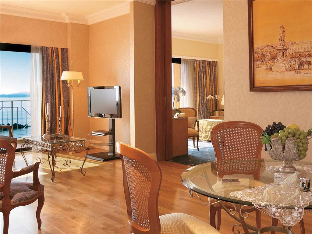 Hotelul dispune de 274 de camere Superior Room Sea View, Deluxe Room Sea View, Corfu Bungalow Garden View or Sea View, Imperial Family Suite Sea View; FAMOUS CLASS – Superior Bungalows Sea View, Junior Bungalow Suites, Family Maisonettes, Deluxe Sea View Suites, Deluxe Two-bedroom Seafront Family Bungalow Suite, Deluxe One-bedroom Seafront Bungalow Suite, Dream Villa Corfu, Dream Villa Corfu Private Pool, Dream Villa Waterfront, Dream Villa Waterfront Private Pool, Presidential Suite, Dream Villa With Pool, Palazzo Private Pool, Royal Pavilion Private Pool, Palazzo Imperiale Private Pool, Palazzo Libro D’ oro with Private Pool.