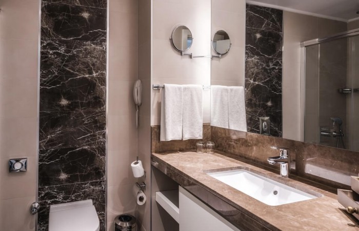 Toate camerele au baie privata cu cabina de dus, uscator de par si articole de toaleta gratuite, aer conditionat centralizat, telefon direct, minibar, facilitati pentru preparare ceai si cafea, seif, parchet, TV cu canale prin satelit, balcon. Anumite camere ofera vedere la mare.