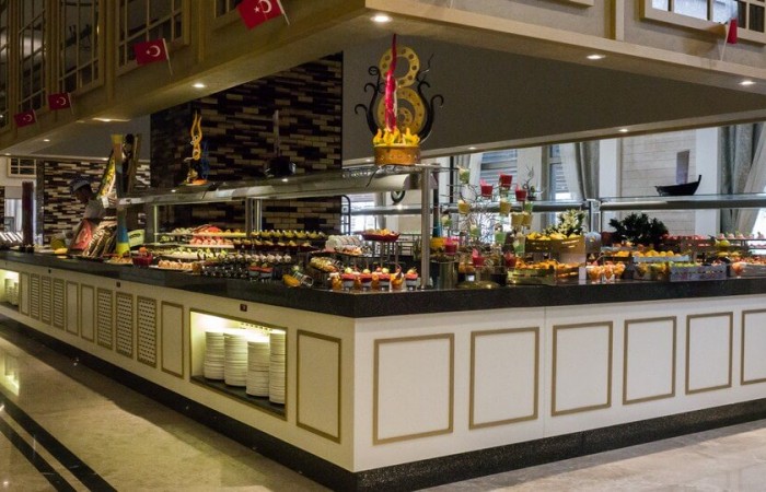 Proprietatea pune la dispozitia oaspetilor sai restaurantul principal, restaurantele a’ la carte Turkish, Italian, Fish si Chinese si baruri pe intreg teritoriul hotelului – lobby bar, lobby lounge bar, snack bar, Gozleme House, bar la piscina, Disco Bar, Vitamin Bar si bar pe plaja.