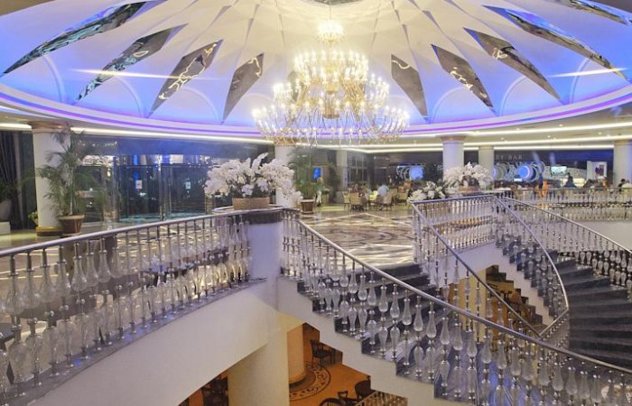 King Suite – Suitele King au vedere catre mare, au o dimensiune de 61 mp, formate dintr-un dormitor si living cu acces la Jacuzzi, balcon mare cu sezlonguri, parchet, 1 baie cu telefon, uscator de par, si dus, 2 mini bar, seif pt laptop, balcon, aer conditionat, detector de fum, telefon direct, fierbator pentru ceai si cafea.