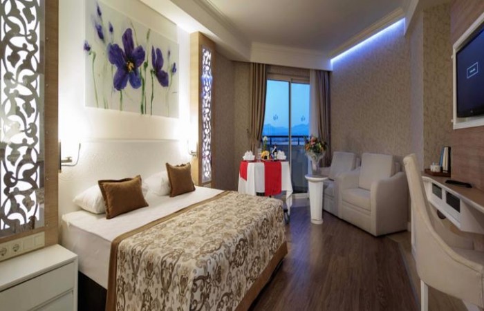 Standard room sea side – camerele standard cu vedere partiala spre mare au o dimensiune de 32 mp si dispun de balcon, parchet,aer conditionat, tv satelite, minibar, seif gratuit, telefon direct. Baia este cu dus, are telefon si uscator de par.