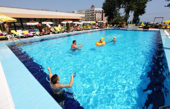 Accesul pentru adulti si copii la cele doua piscine in aer liber este gratuit. Oaspetii beneficiaza de sezlonguri, umbrele, prosoape si saltele.