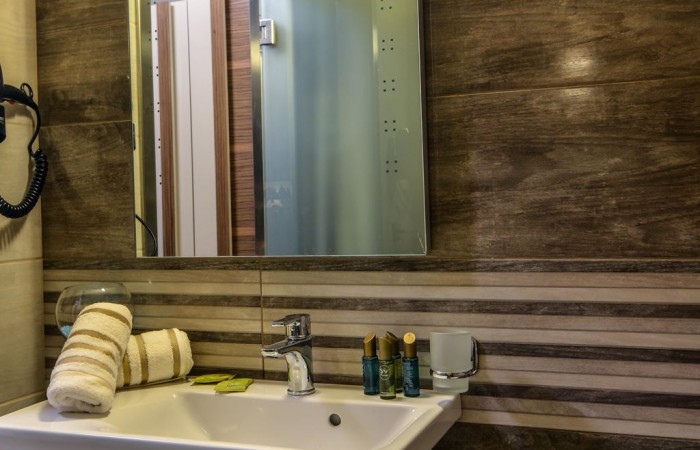 Camerele spatioase si confortabile sunt dotate cu aer conditionat, TV cu canale prin satelit, frigider, seif, baie cu cabina de dus, uscator de par si articole de toaleta gratuite. Balconul ofera vedere la golful Thermaikos sau la Muntele Olimp. In zonele publice exista internet Wi-Fi. Restaurantul proprietatii serveste preparate mediteraneene si internationale, dar si bauturi racoritoare si bauturi alcoolice.