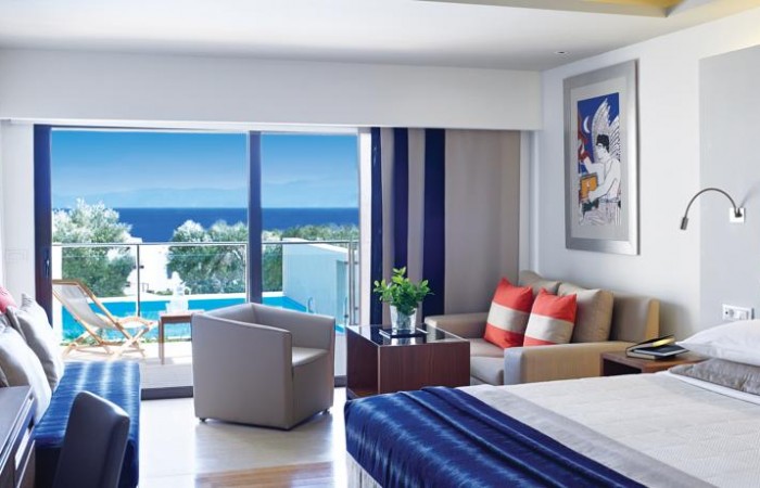 Construit in amfiteatru catre mare, acest resort de lux ofera o priveliste panoramica superba catre una din cele mai frumoase zone ale Cretei – Golful Mirabello.