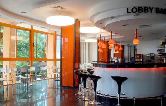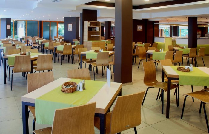 Restaurantul hotelului serveste preparate culinare din bucataria traditionala si internationala. Bauturi racoritoare si bauturi alcoolice pot fi servite la barul din hol.