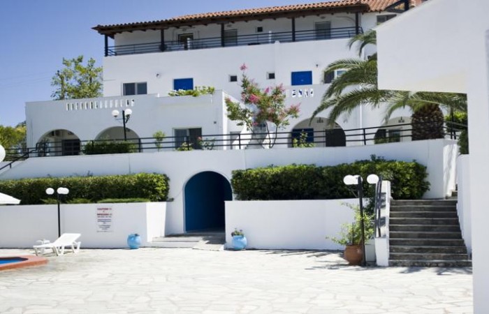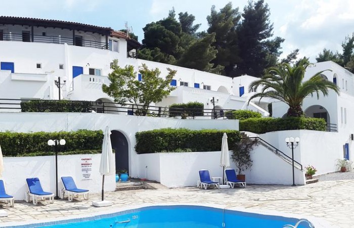 Hotelul Theo Bungalows 3* este un loc perfect pentru toți cei care caută o vacanță de vară pentru relaxare, departe de plajele aglomerate din Halkidiki. Hotelul este situat pe brațul Kassandra din Halkidiki, la 300 m de statiunea Kriopigi, intr-o mica padure de pini. Hotelul se află la o distanță de 600 de metri de plajă. Distanța până la cel mai apropiat aeroport este de 90 km.