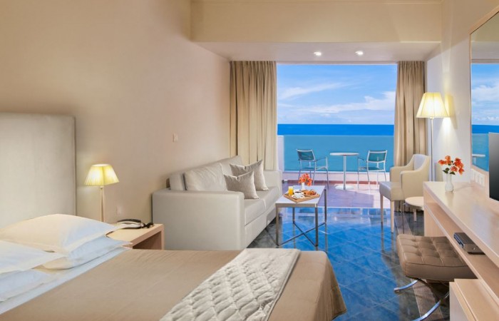 Hotelul dispune de 181 de unitati de cazare respectiv Double Promo (cu o suprafata de 20 m˛), Double Room Inland View or Sea View (cu o suprafata de 24 m), Double Superior Sea View (cu o suprafata de 30 mp, ce ofera vederi panoramice la mare si la plaja cu nisip.
