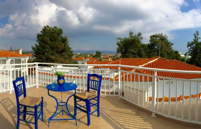 Plaja cu steag albastru din Psakoudia este la doar 80 de metri si ofera sezlonguri, umbrele de soare si facilitati de sporturi nautice, contra cost. La piscina hotelului, sezlongurile si umbrelele de soare sunt gratuite. Hotelul dispune si de o piscina pentru copii.