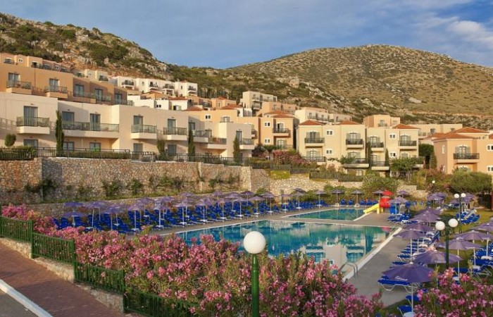 Hotelul de 4* Smartline Village Resort & Waterpark este situat in orasul Hersonissos, la 10 minute de mers pe jos fata de plaja. Hotelul ofera, gratuit, de 6 ori/zi, un shuttle bus pana la plaja .