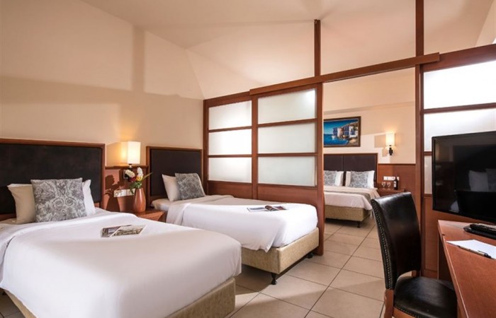 Toate spatiile de cazare sunt prevazute cu aer conditionat si mobilier elegant, telefon direct, seif (contra cost), mini-frigider, baie (cada-dus), uscator de par, articole de toaleta gratuite. Cele 267 de camere si suite elegante sunt inconjurate de palmieri inalti si gradini amenajate si ofera vedere la piscina, gradina sau la mare. Unele spatii de cazare sunt prevazute cu o piscina proprie cu terasa din lemn. Internet wireless este disponibil in intregul hotel si este gratuit.