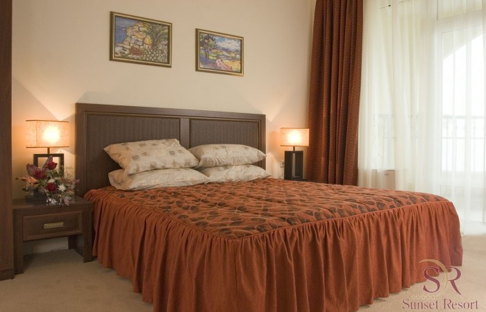 -Apartamentele cu un dormitor au o suprafata cuprinsa intre 45-50 mp si includ: un dormitor (cu pat matrimonial), living, bucatarie, masa, TV prin satelit, canapea, telefon, balcon sau terasa, baie cu cada de baie si /sau cabina de dus, uscator de par, seif. Gradul maxim de ocupare este de 3 persoane.